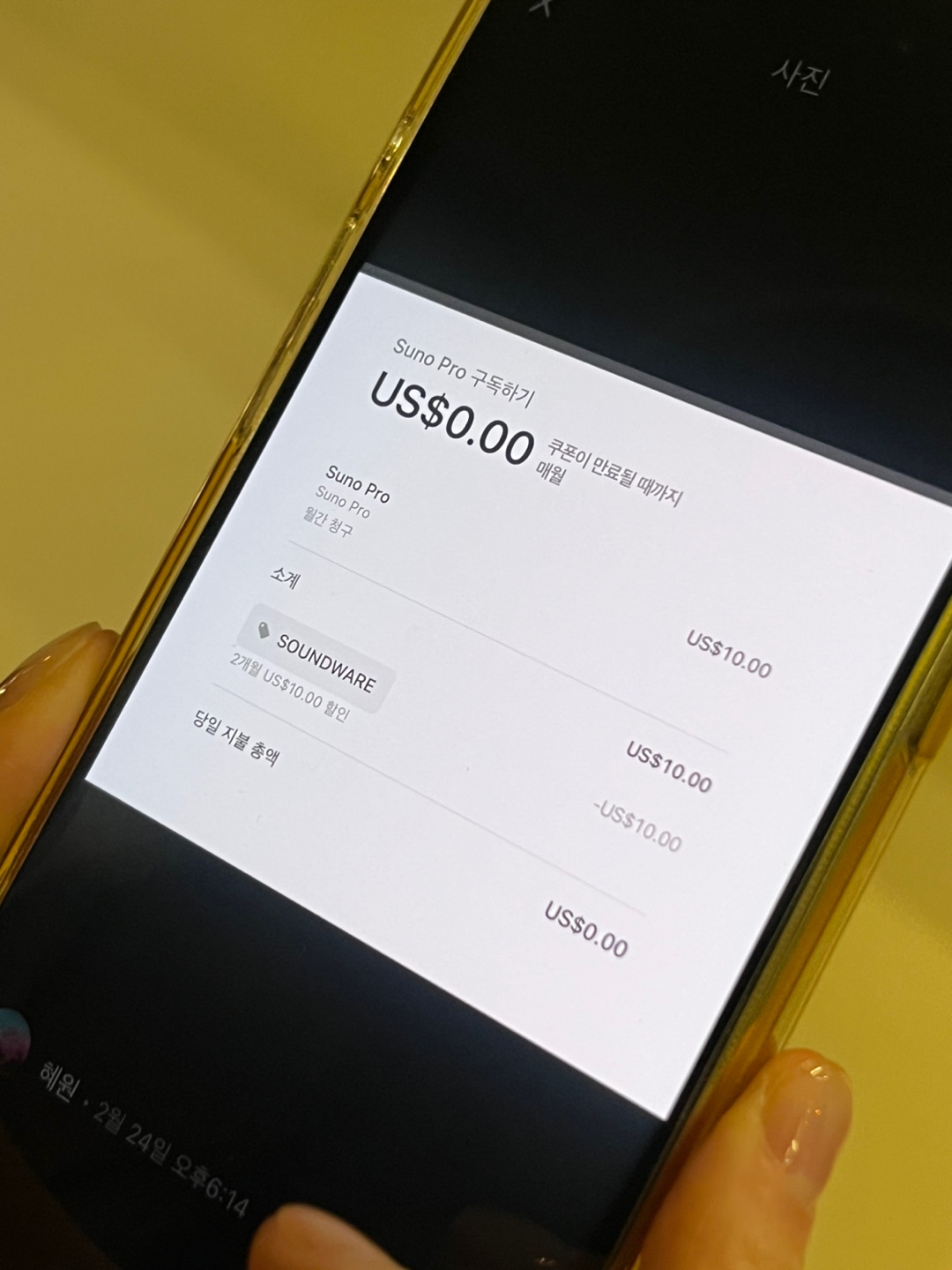 이벤트나 프로모션 코드란에 제공된 할인 또는 무료 코드(SOUNDWARE)를 입력합니다.