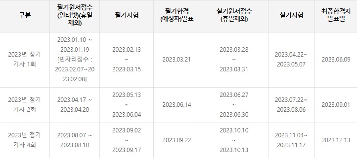 2023년도 제1회 필기시험은 2월 13일부터 2월 28일까지이며, 3월 시험은 응시자격이 3월에 충족되는 응시생을 위한 추가 시험이다. 2월 시험 대상자가 3월 시험을 또 응시하는 건 불가능하다.