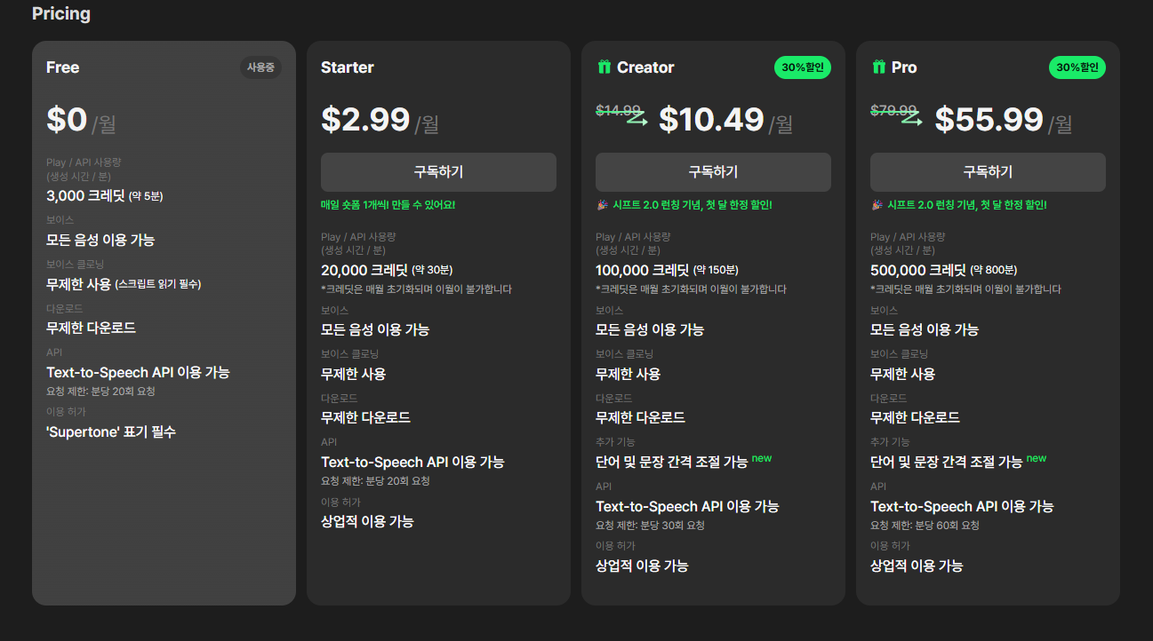 - OBT 3개월 무제한: 기간 중 모든 음성 생성 무제한